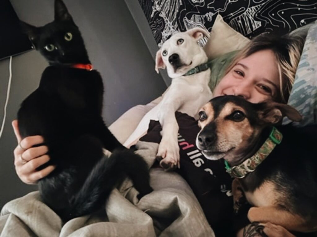At home, I have two cats Timmy and Prim, and two dogs Tuck and Koda!