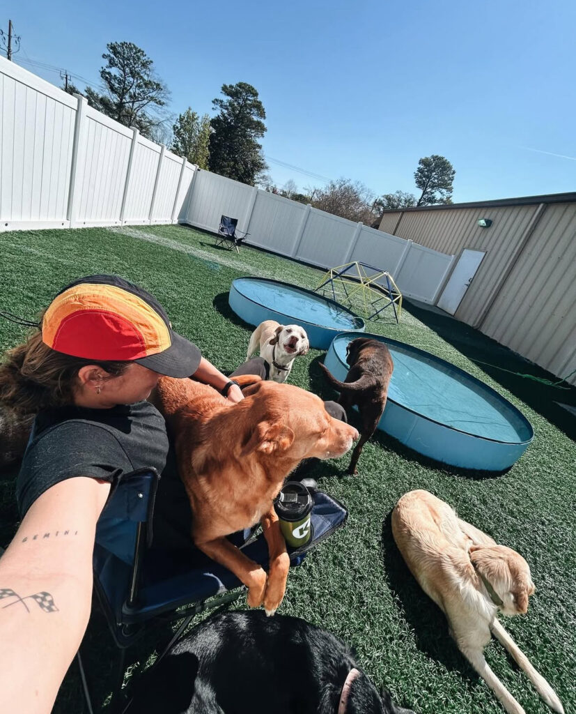 I have loved getting to know all of the daycare dogs and their different personalities. My favorite thing is watching them play in the pool and just getting to hanging out.